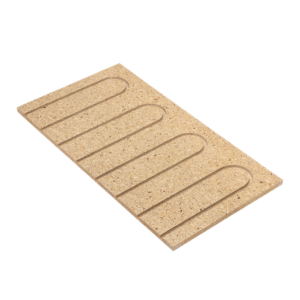 Another system for dry underfloor heating is the use of a special gypsum board with pre-grooved channels for laying the heating pipe. These systems require the use of a thinner 10 or 12 mm underfloor heating pipe. After laying the dry underfloor heating system, the gypsum boards can be covered with a gypsum fiber board or tiles can be laid directly on the board.